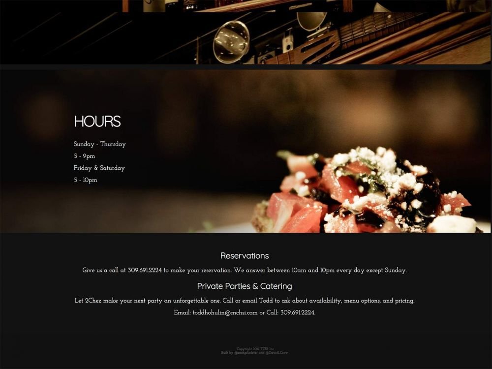 2 Chez creates authentic, rustic dishes inspired by classic, old-world flavors, with their own twist! Cybernautic® is one of the top web design companies in Peoria. Together, we worked on a vision to create a website to show off their hand-crafted dishes and their rustic dining experience!