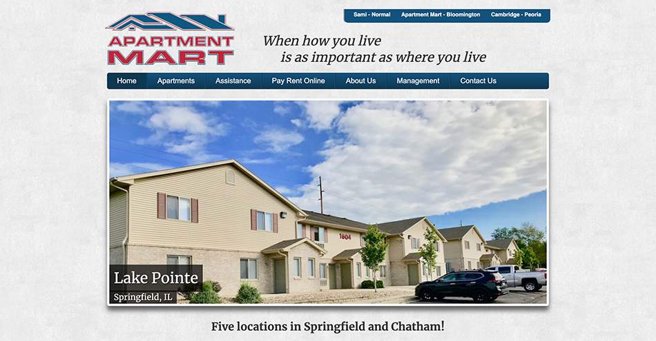 Apartment Mart of Springfield was established in 1998 to manage property owned and to acquire or construct additional properties in the Springfield area. Cybernautic® is one of the top Springfield IL web designers. Together, we worked on a vision to create a website to help Apartment Mart be the leader in offering their tenants the latest in services and amenities.