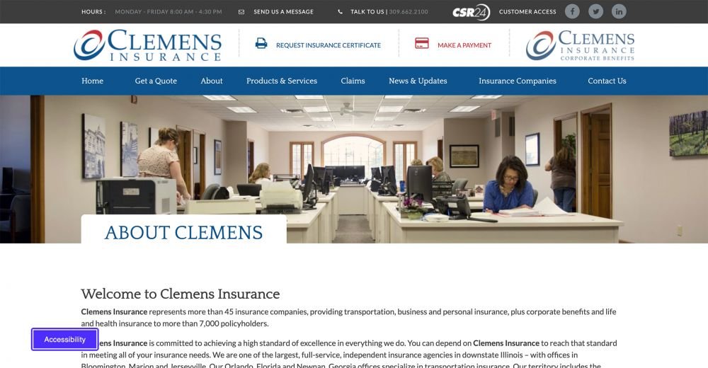 Clemens Insurance represents more than 45 insurance companies, providing transportation, business, and personal insurance, plus corporate benefits and life and health insurance to more than 7,000 policyholders. Cybernautic® is one of the top St. Louis Web designers. Together, we worked on a vision to create a website to help Clemens Insurance meet all of their client's insurance needs.