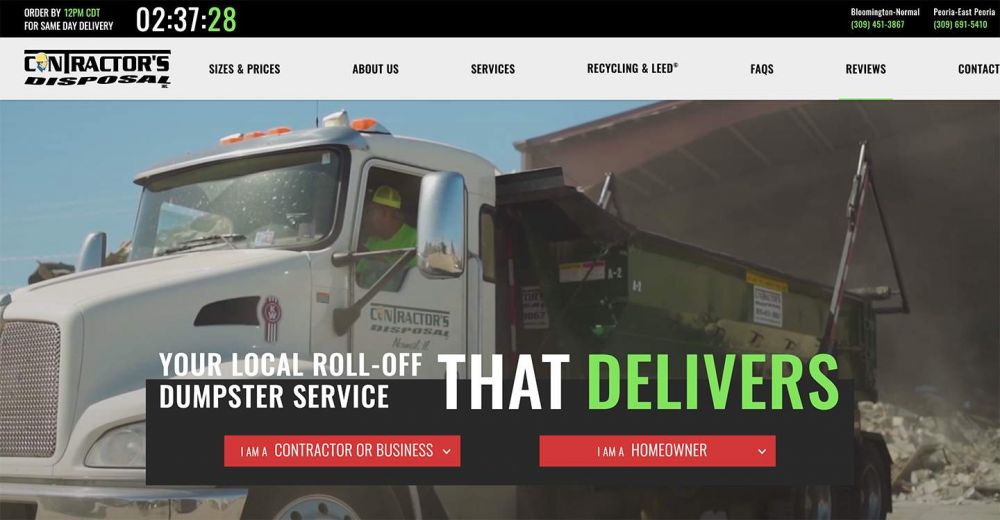 Contractor's Disposal is a family-owned and operated dumpster rental company serving the entire Central Illinois area providing residential, commercial, and industrial customers with roll-off dumpster and storage containers since 1997. Cybernautic® is one of the top Champaign Web designers. Together, we worked on a vision to create a website to help Contractor's Disposal provide first-class service to all its customers!